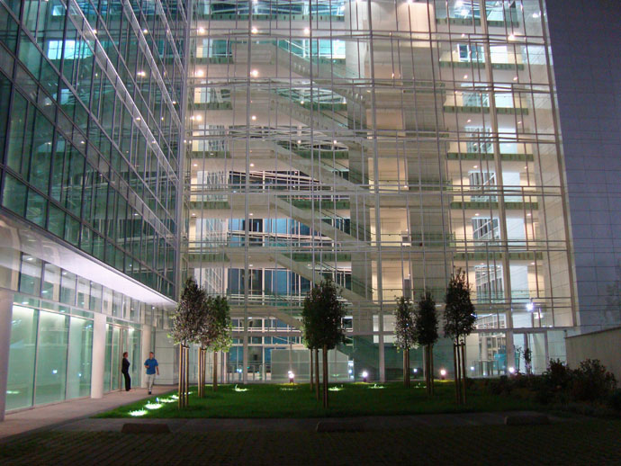 L’architecture contemporaine intègre de fait l’éclairage au bâtiment. Conçu dès l’origine comme un tout indissociable, l’image diurne et nocturne traduisent le même concept, dans une harmonie évidente.