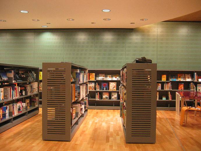 La médiathèque de Poissy, entièrement aveugle, devait faire oublier sa situation en sous‑sol.